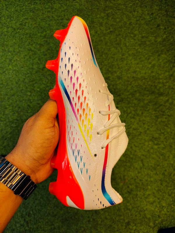 Description: Discover the ultimate performance with our imported master copy Grade A quality football boots, meticulously crafted for professionals. Engineered for durability, these boots are built to withstand intense play while providing maximum comfort and injury prevention. Designed for knee safety and optimized to keep you injury-free, our boots ensure stability and protection on the pitch.